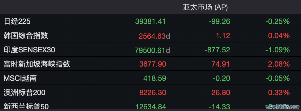 市场方面,今日,除了A股、港股等中国资产外,亚太市场总体偏弱。其中日经225指数一度跌超1%,目前跌幅收窄至0.25%;韩国综合指数一度跌近1%,目前翻红微涨;印度SENSEX30指数跌超1%。