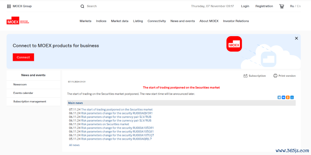 当地时间11月7日早间,莫斯科交易所发布消息宣布推迟开市时间,开市时间将另行通知。